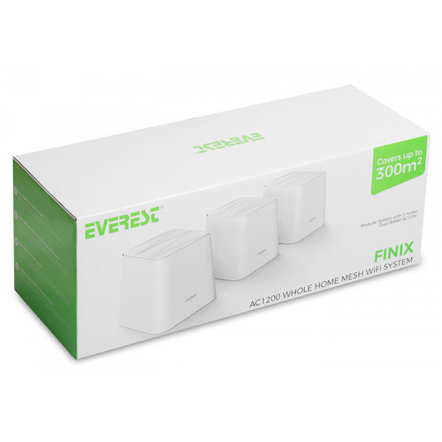 Everest FINIX MW3-3P 2.4GHz 5GHz AC1200 IEEE802.3, IEEE802.3u 3lü Mesh Kablosuz AC Router ; Önceden hazırlanmış konfigürasyon ile kolay ve hızlı kurulum. Önceden eşleştirmesi yapılmış MW3'ün kurulumu son derece basittir, kablo bağlantı külfetine son verir.